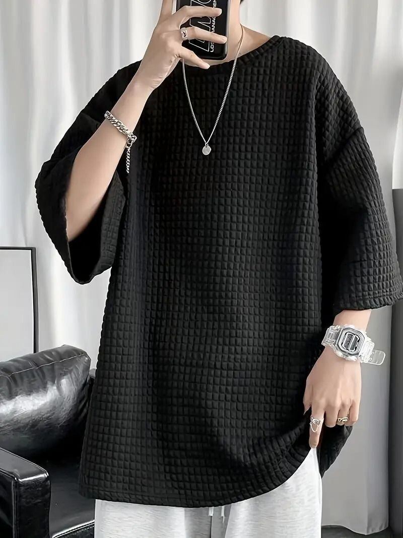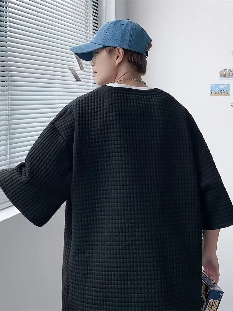 メンズ Tシャツ 夏 香港スタイル ワッフル生地 立体デザイン 半袖 カジュアル トレンド ルーズフィット シンプル アウトドア トップス 汎用性 高い おしゃれ