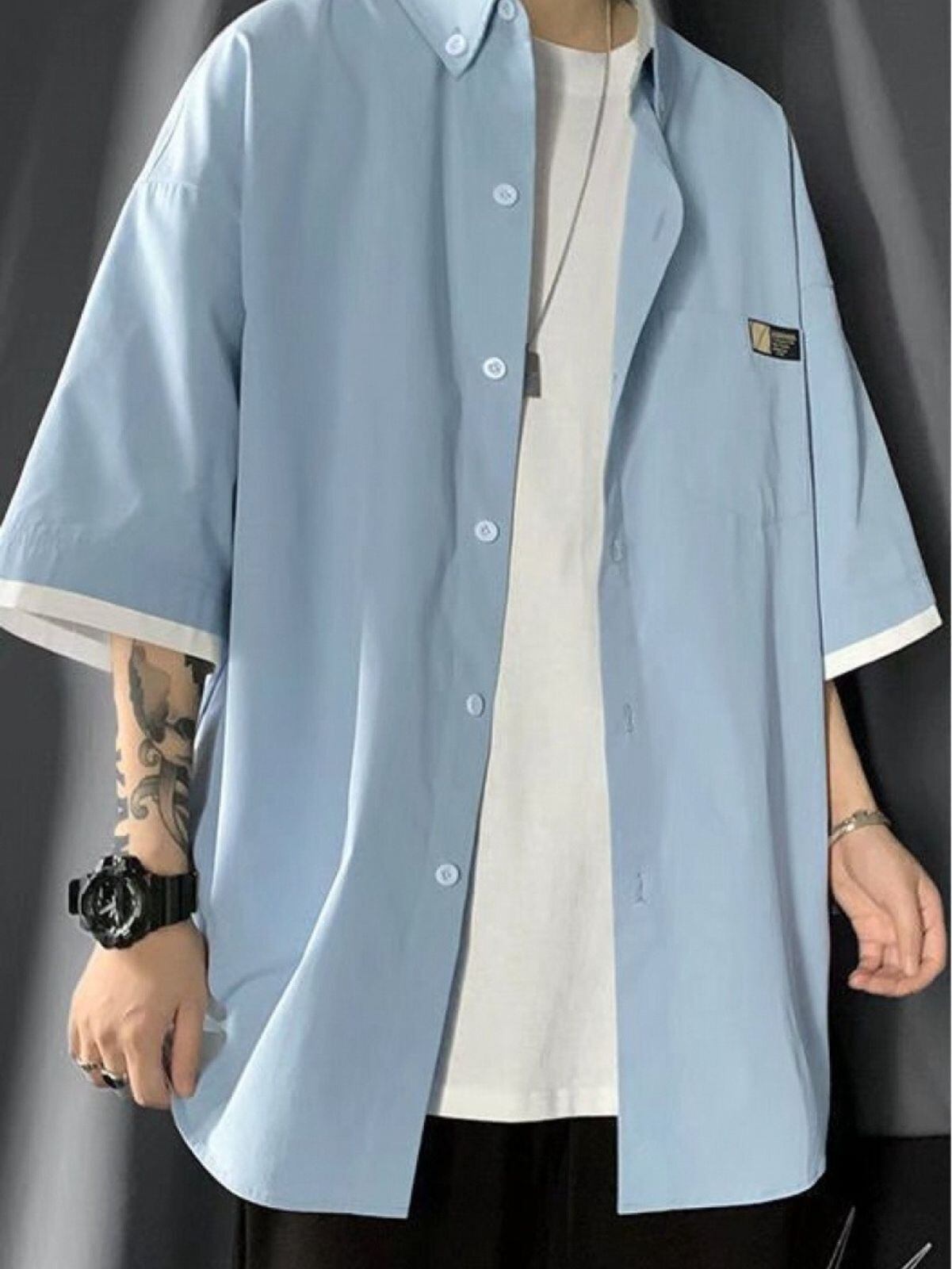 メンズ シャツ 夏 カジュアル 薄手 韓国 軽量 通気性 クール ゆったり パッチワーク 袖デザイン ルーズフィット シンプル おしゃれ