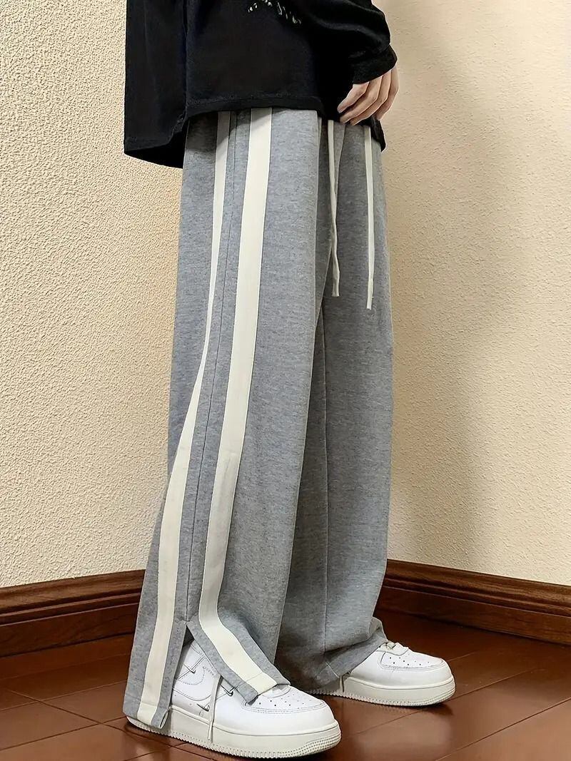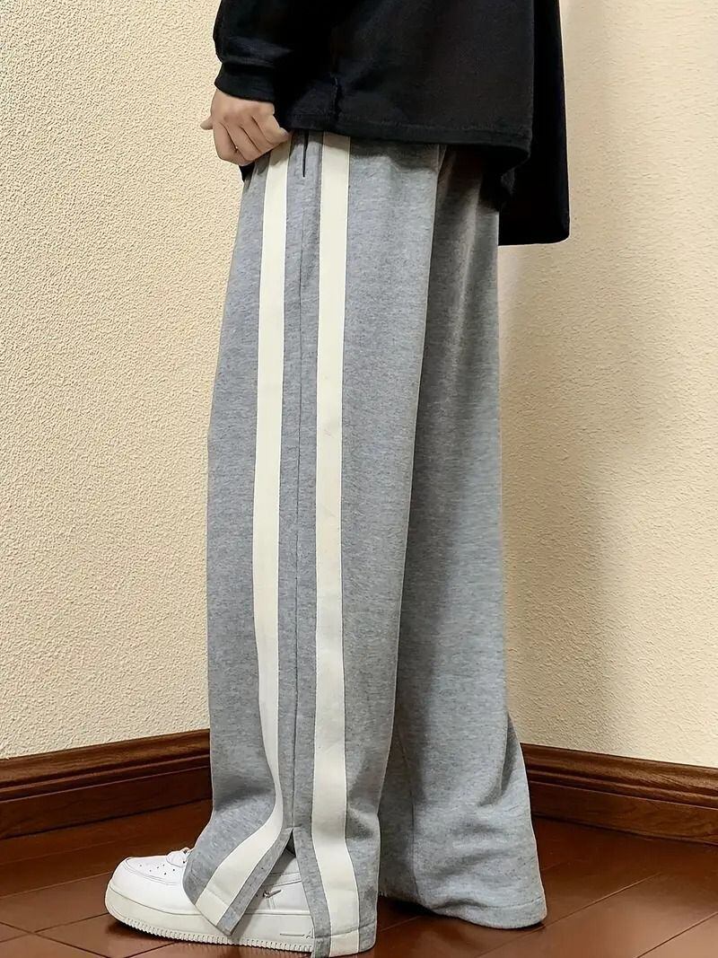 軽量で耐久性に優れたメンズ スウェットパンツが登場!カジュアルなルーズフィットで、ストレートレッグのデザインが特徴です。伸縮するウエストバンドとドローストリングで、快適なフィット感を実現しました。ホワイトのストライプがスタイリッシュな印象を与え、韓国風のストリート系コーディネートにもぴったりです!リラックスした着心地は、部屋着としてだけでなく、外出時のおしゃれなスタイルにも活躍します。ぜひ、このアイテムで自分だけのコーディネートを楽しんでください!