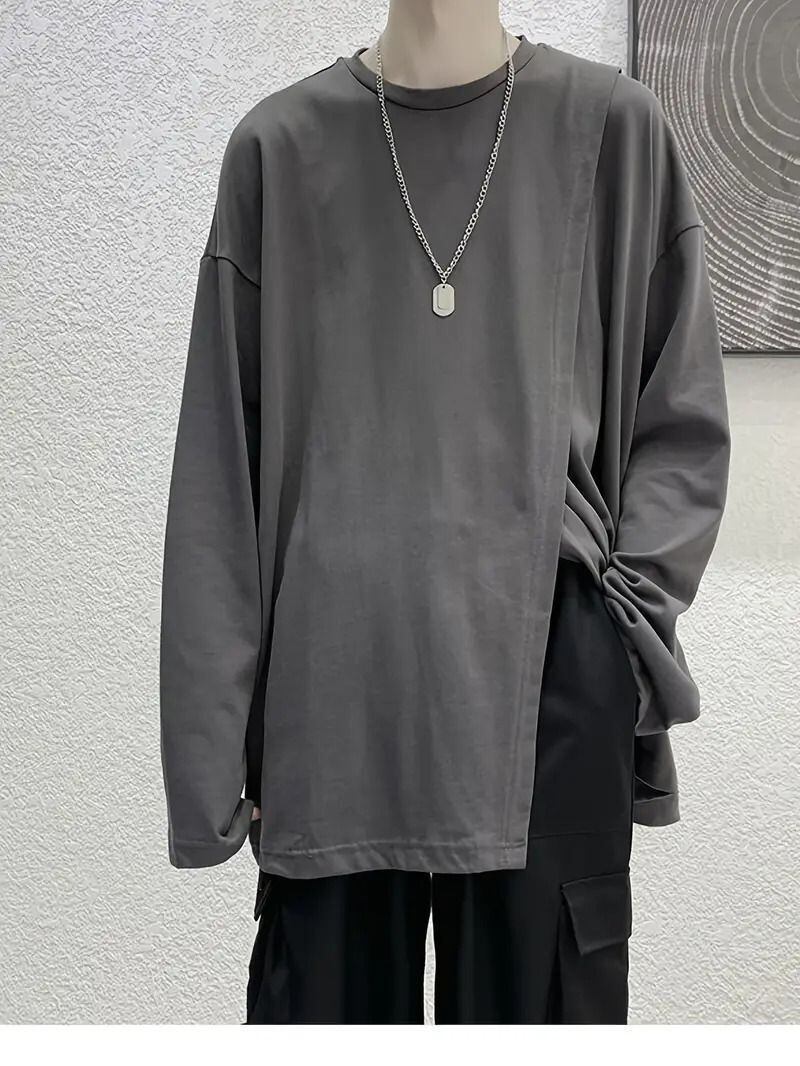 個性派デザインで魅せるメンズ スプリットシャツが新登場!長袖のゆったりフィットは、カジュアルなスタイルを楽しむのに最適です。特殊な開叉デザインが特徴のこのシャツは、シンプルでありながらも魅力的なルックスを実現しています。快適素材を使用しているため、ルームウェアとしても活躍し、普段使いにもぴったりです。韓国風のトレンドを取り入れたスタイルで、体型カバー効果もあるため、どんな体型の方にもおすすめ。ギフトにも最適なアイテムですので、大切な方への贈り物にもご利用いただけます!