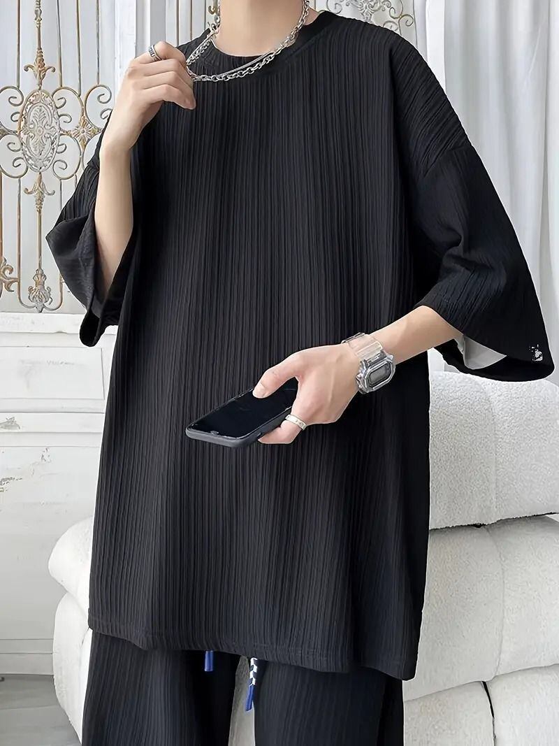 通気性抜群!夏にぴったりなメンズ Tシャツの登場です。縦ストライプのデザインが目を引くこのTシャツは、オーバーサイズでゆったりとした着心地が特徴。ドロップショルダー仕様により、リラックスしたシルエットを実現しています。快適素材を使用しているため、長時間の着用でもストレスフリー。モダンストリートスタイルを意識したデザインで、レジャーやデイリーユースはもちろん、韓国風ファッションとも見事にマッチします。涼感のある素材感で、暑い夏の日でも快適に過ごせるアイテムです!
