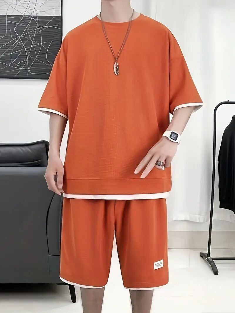 メンズ セットアップ 半袖Tシャツ ショートパンツ 上下セット 春夏 カジュアル ルーズフィット スポーツウェア 部屋着 リラックスウェア 普段着 韓国風 おしゃれ トレンド 快適 涼しい シンプル レイヤード風