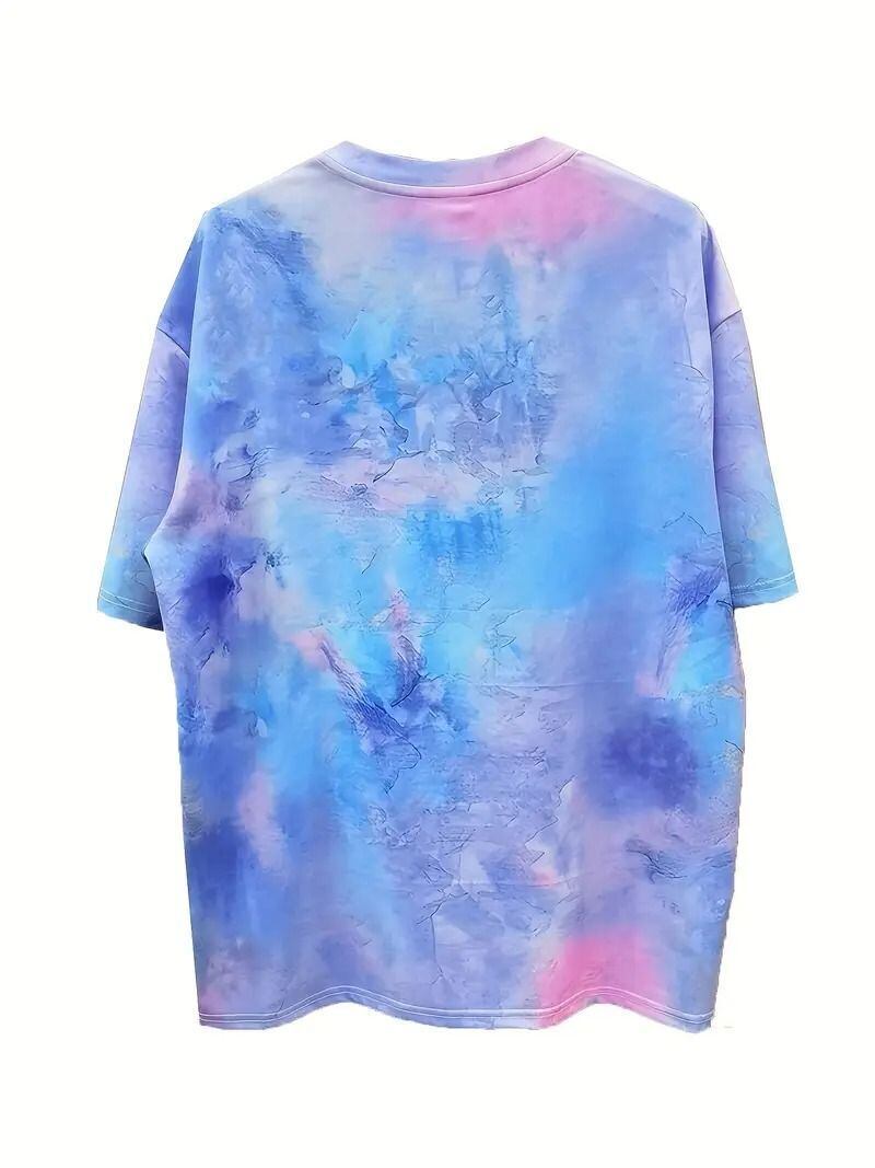 メンズ Tシャツ 夏用 レトロ インクタイダイ ルーズフィット 半袖 ラウンドネック カジュアル アイスシルク 快適素材 アーティスティック プリント トレンディ ファッション