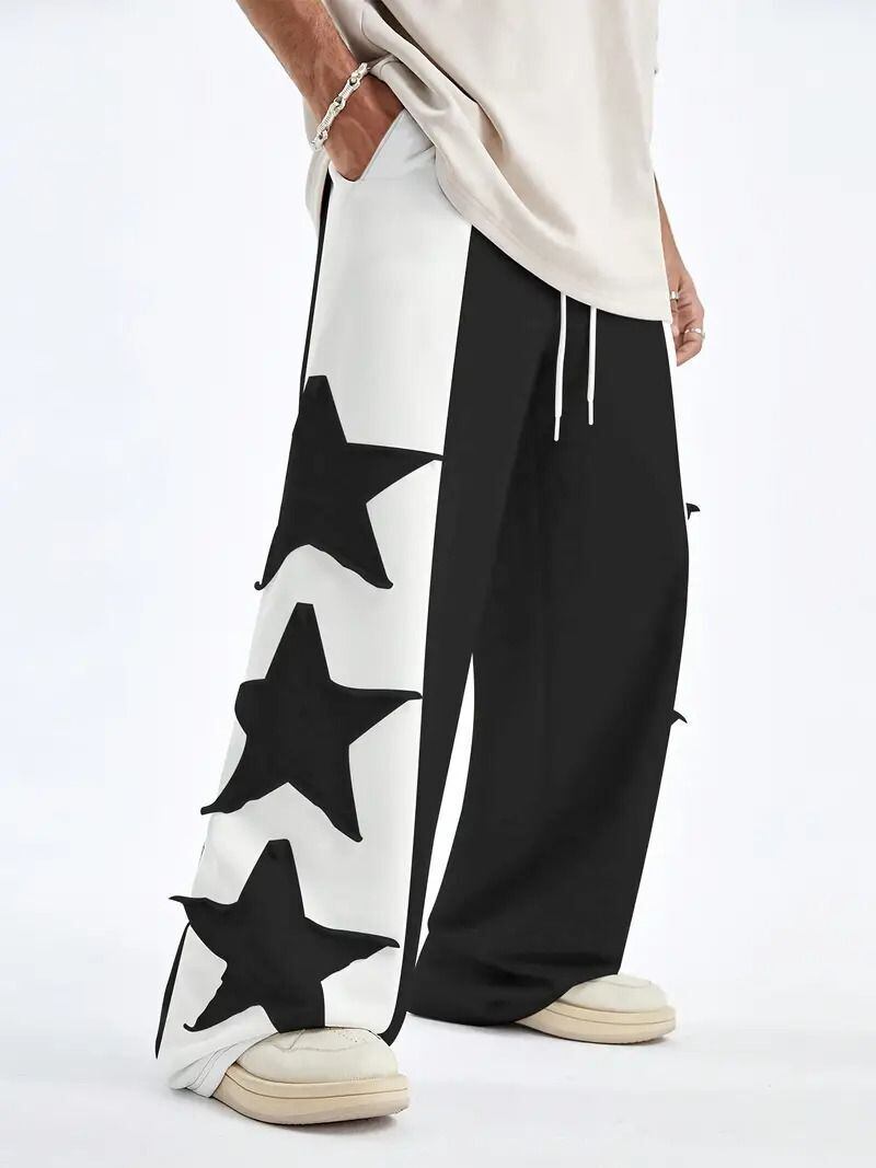 メンズ カジュアル ドローストリングウエスト パンツ コントラストカラーパッチ ストレートレッグ オールシーズン 快適 デイリーウェア ファッション ボトムス トレンド おしゃれ