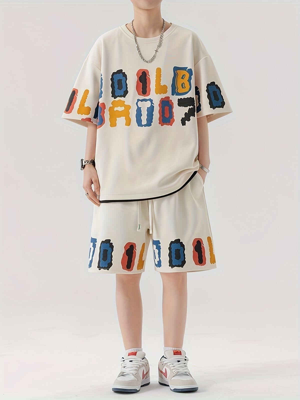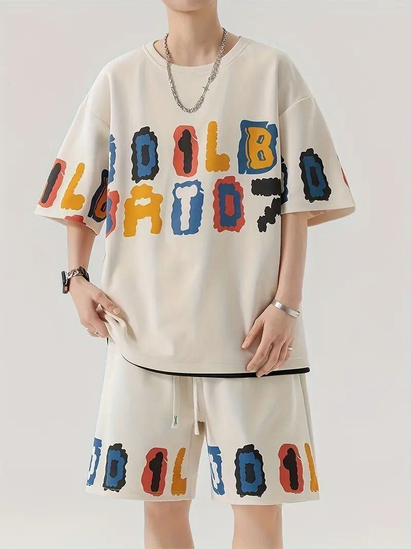 メンズ 夏用 セットアップ 半袖Tシャツ パンツ 2点セット アイスフェイク ツーピース ルーズフィット カジュアル スポーツウェア 通気性 快適 韓国ファッション トレンド おしゃれ 部屋着