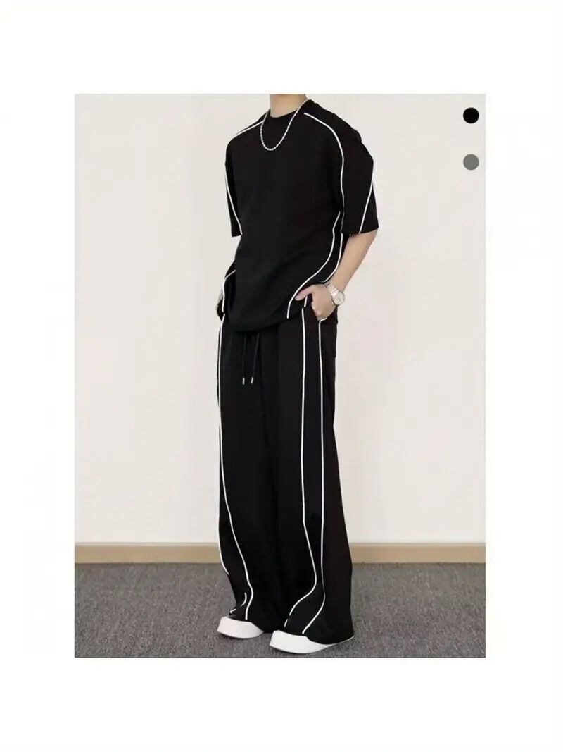 メンズ セットアップ 夏 韓国風 ニッチデザイン 半袖Tシャツ&ロングパンツ 上下セット ストリート系 カジュアル クール トレンド おしゃれ