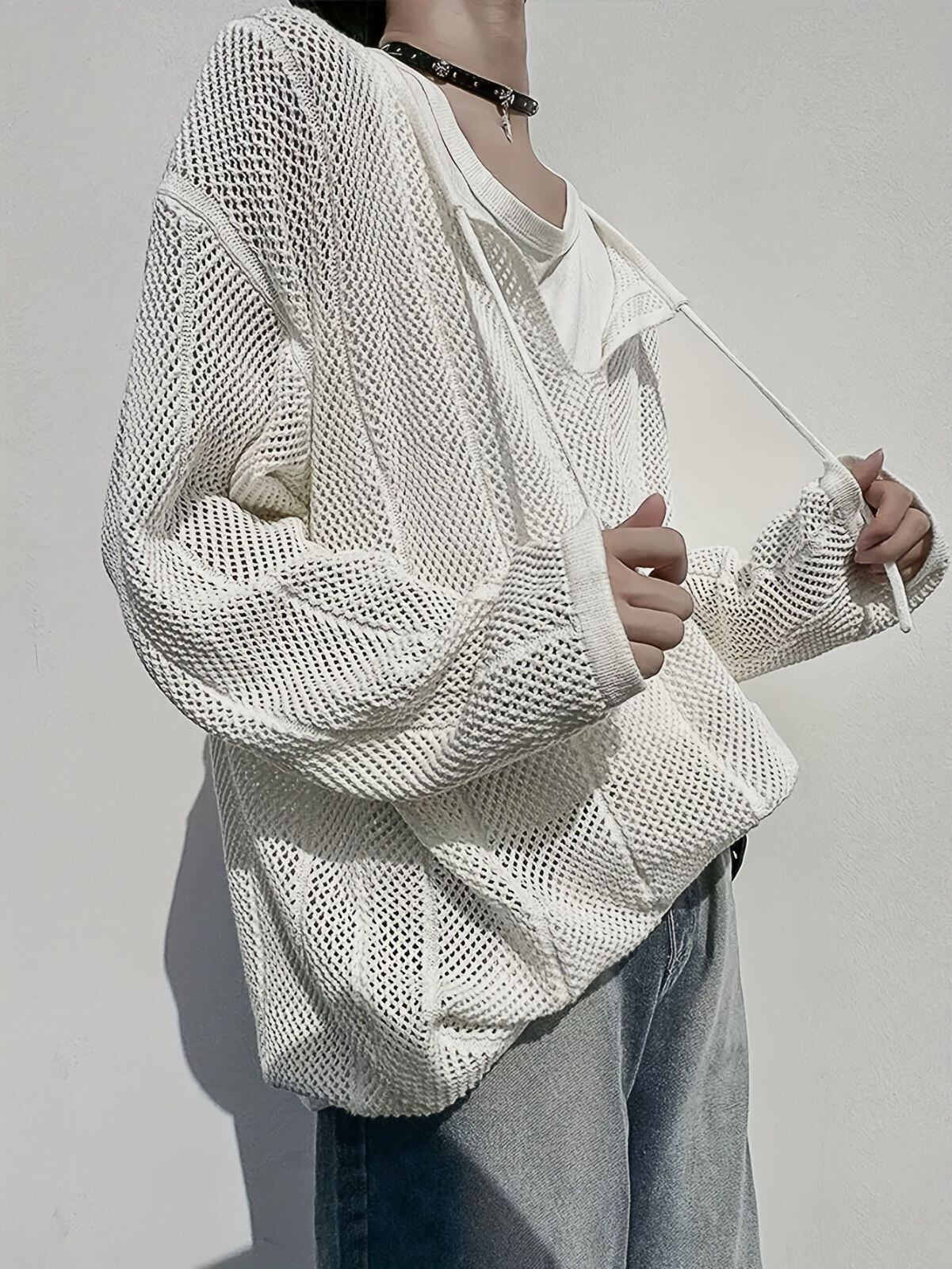 メンズ ニットセーター Vネック カジュアル 長袖 春夏秋 軽量 通気性 伸縮性 レイヤード セーターベスト風 シンプル おしゃれ トップス