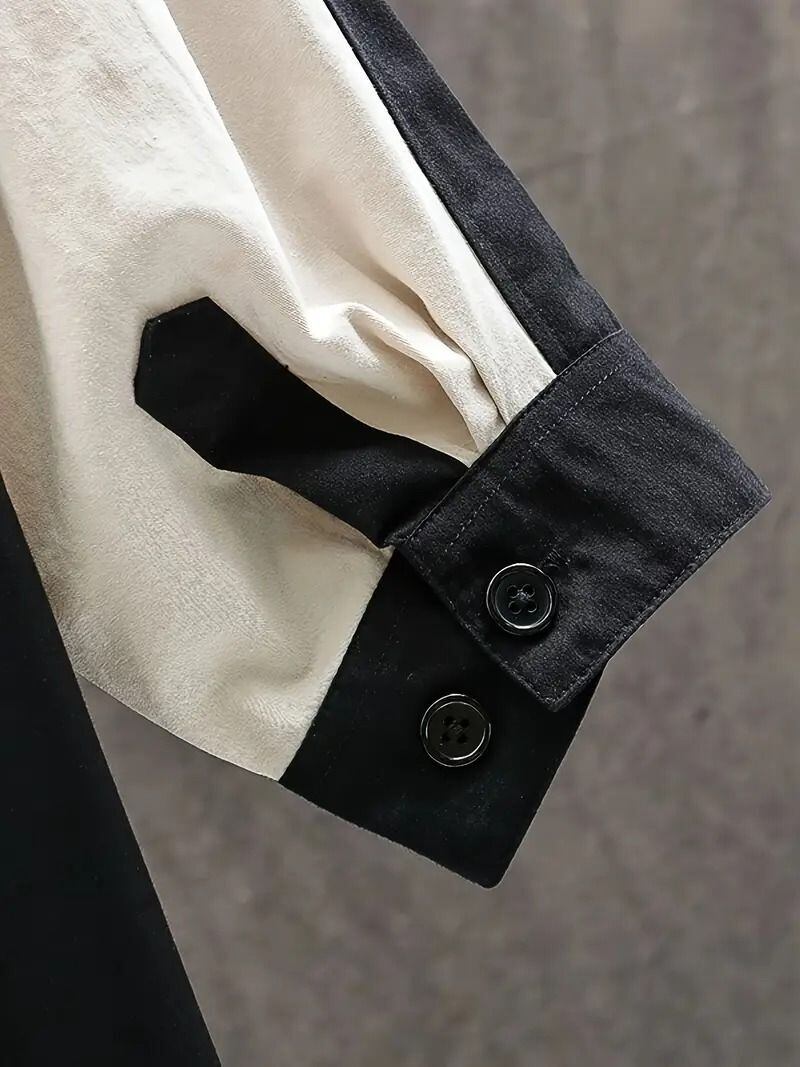 メンズ 綿100% カラーブロック 長袖シャツ ポケット付き ルーズフィット 春夏秋 カジュアル おしゃれ トレンド 通勤 通学 アウトドア