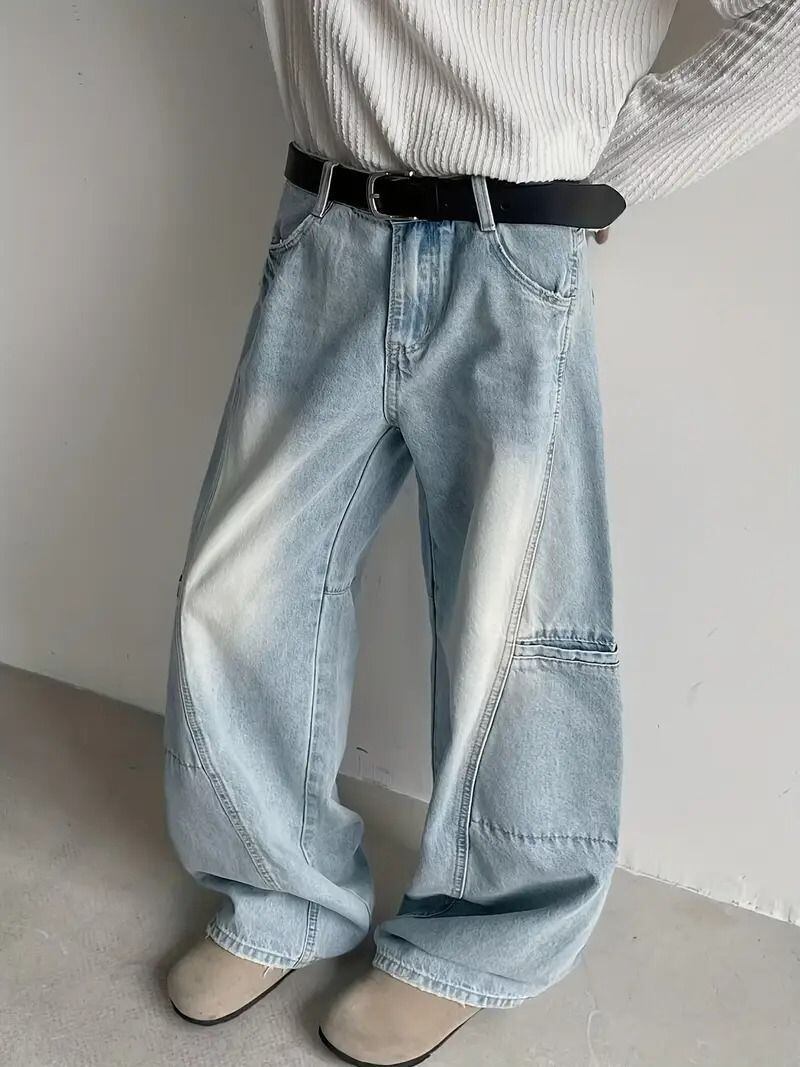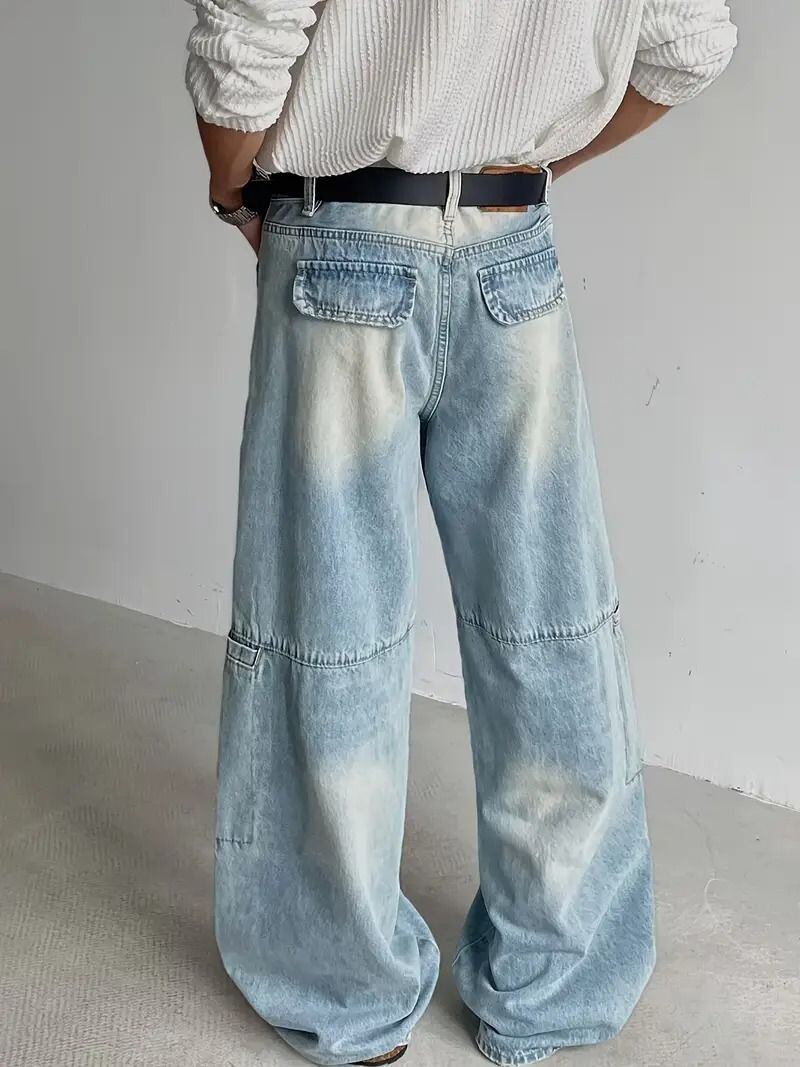「メンズ ジーンズ レトロ風 ライトブルー カーブドヘム ルーズフィット」は、春秋のカジュアルスタイルにぴったりの新作アイテムです!淡いライトブルーの色合いが爽やかで、レトロ風のデザインが特徴的です。カーブドヘムとルーズフィットのシルエットは、リラックスした着用感を提供しつつもスタイリッシュさを兼ね備えています。また、パッチワークデザインとマルチポケットが実用性を高め、デニム好きにはたまらない一着です。このジーンズを着用して、トレンド感満載のスタイリングを楽しんでください!