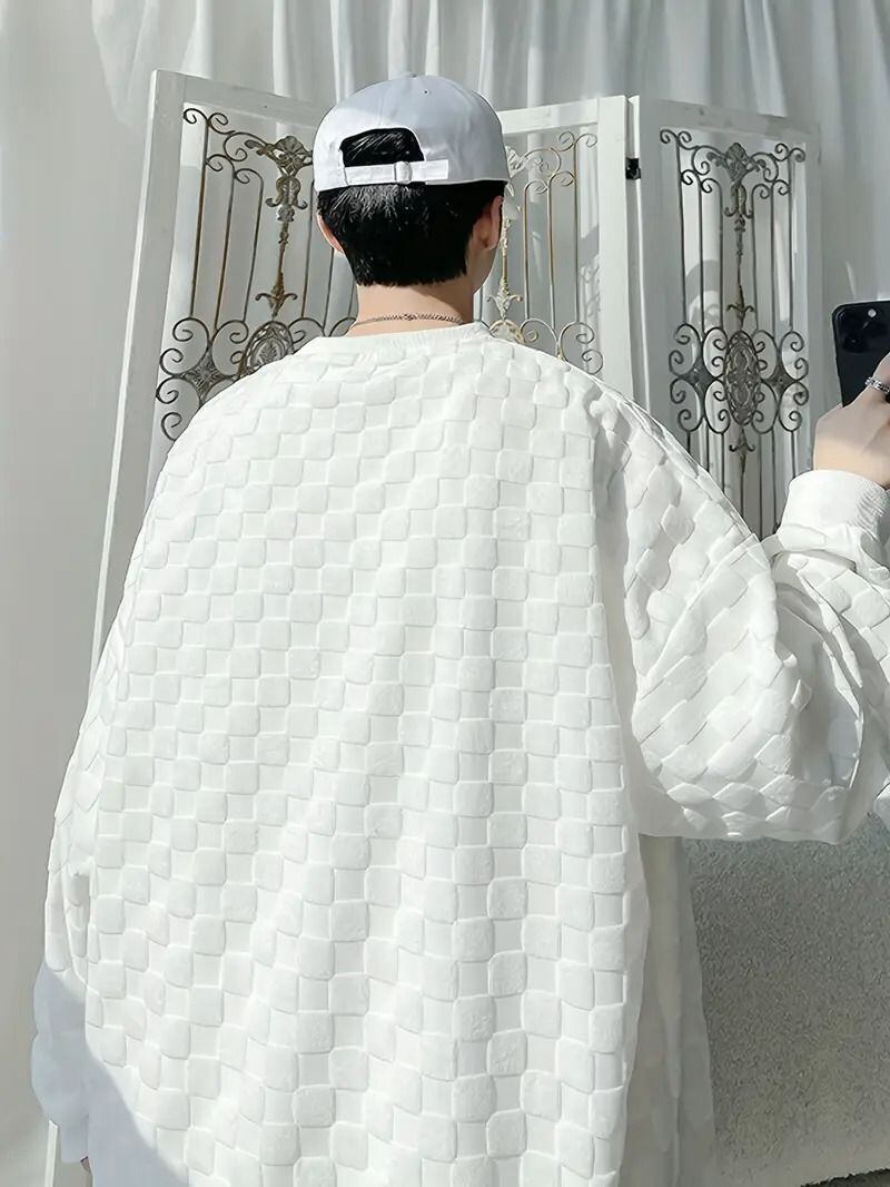 メンズ チェックグリッド スウェットシャツ 100%ポリエステル スーパールーズフィット カジュアルプルオーバー 長袖 ラウンドネック 220gsm アウトドア カジュアルウェア ギフト向け