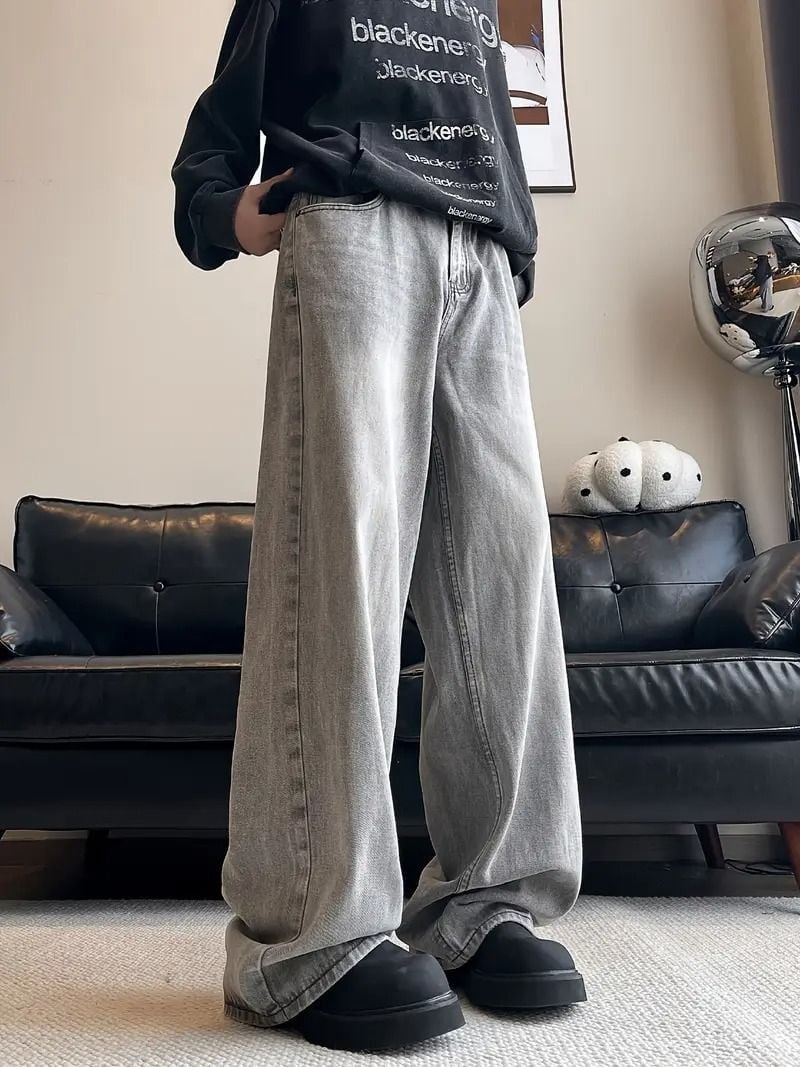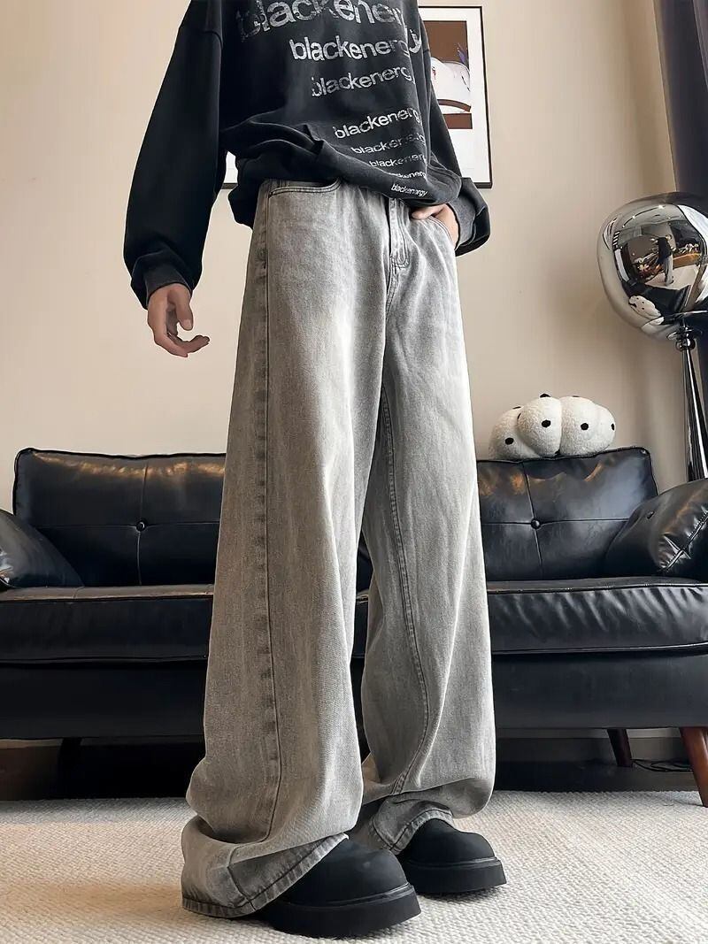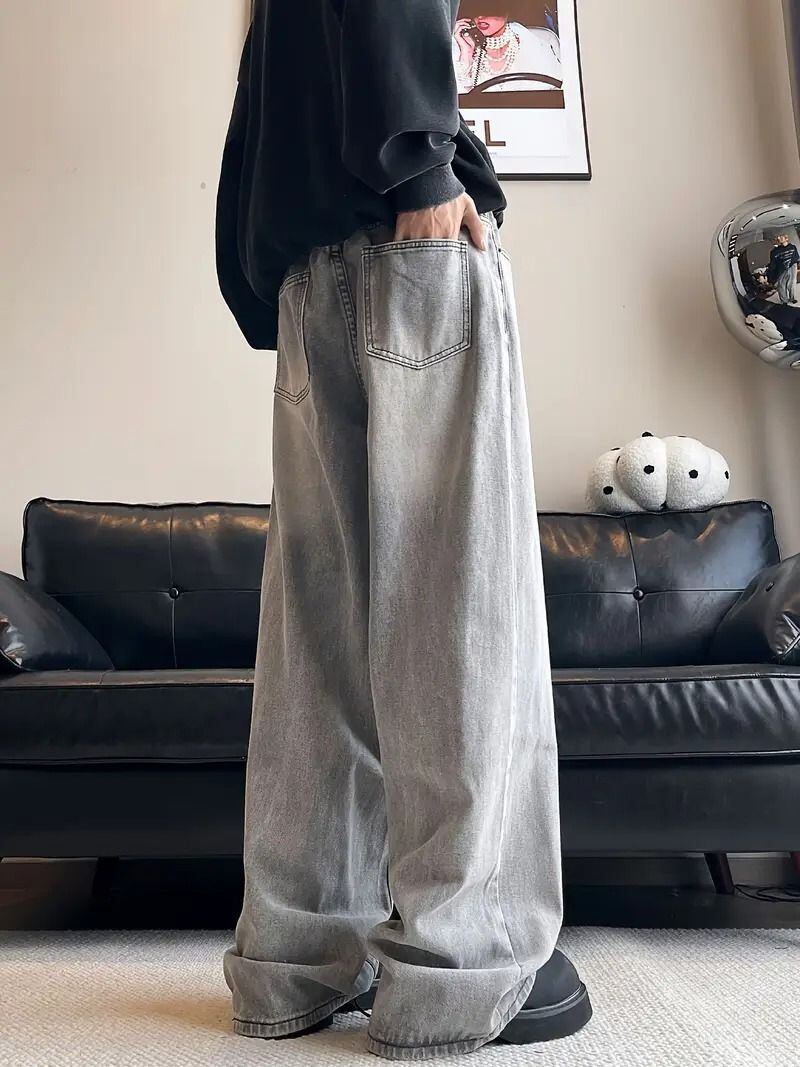 メンズ ストリート ジーンズ ウォッシュド ディストレスド ルーズフィット ストレート ロングパンツ ヨーロピアン アメリカン カジュアル