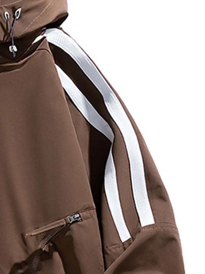 メンズ 防風ジャケット ヘビーデューティー フルジップ フード付き ウィンドブレーカー ホワイトストライプ 春秋 ハイキング キャンプ スキー カジュアルアウター