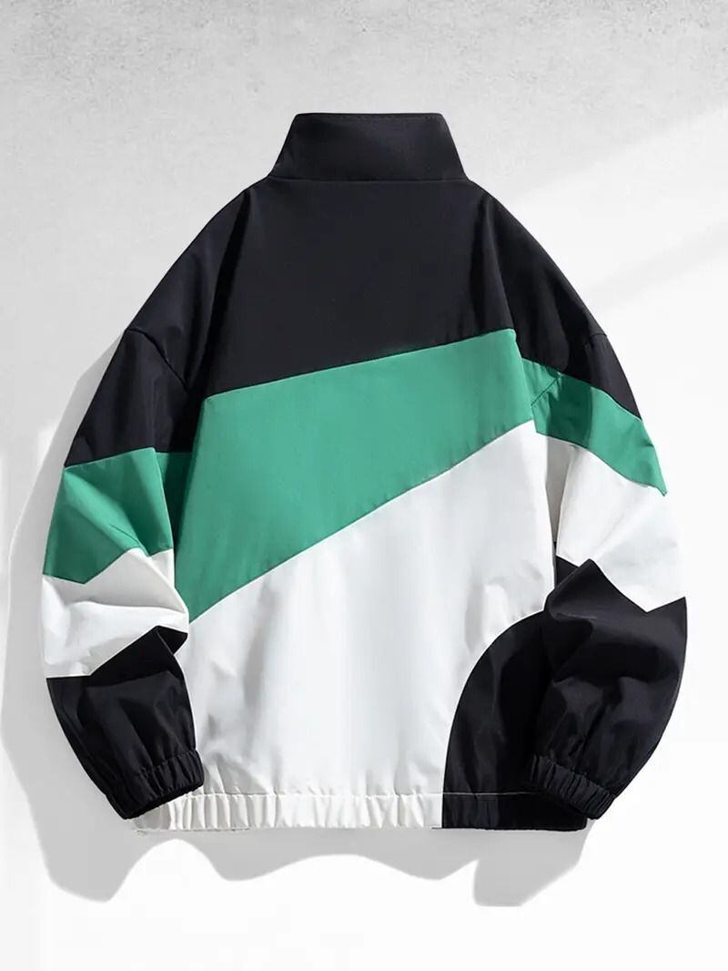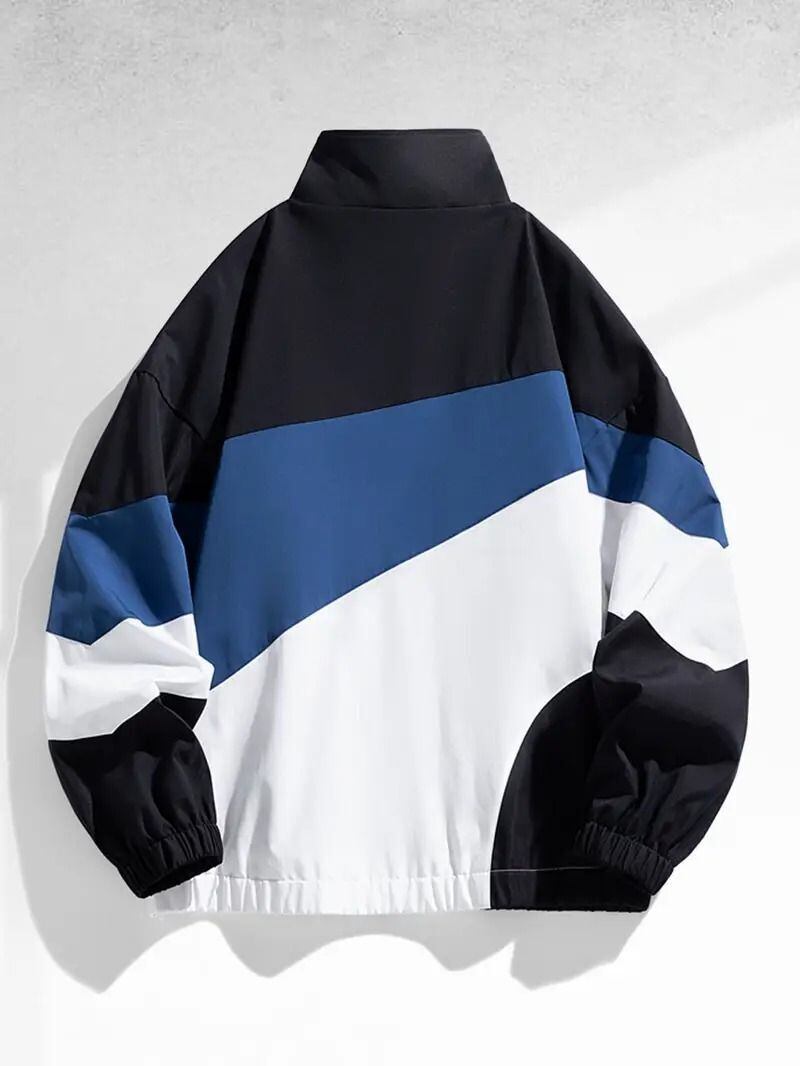 メンズ 軽量 ジャケット スタンドカラー フルジップ カラーブロック 春秋 コート ポリエステル カジュアル アウター ストリート ジム