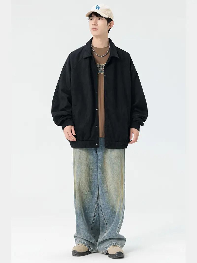 メンズ ジャケット ヴィンテージ風 ストリート ボンバーコート ボタン留め ルーズフィット 秋冬 カジュアル アウター おしゃれ