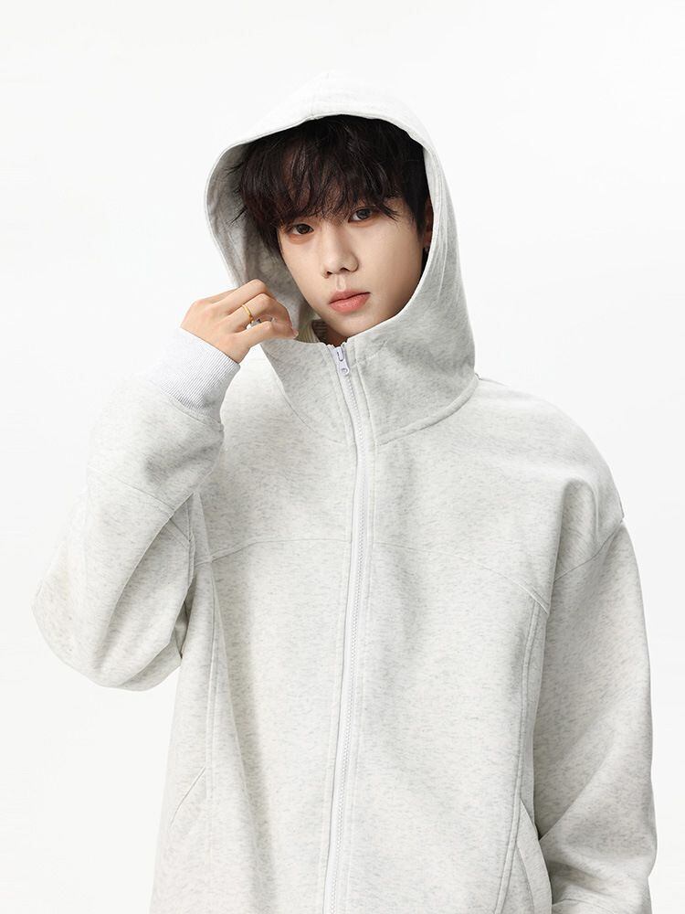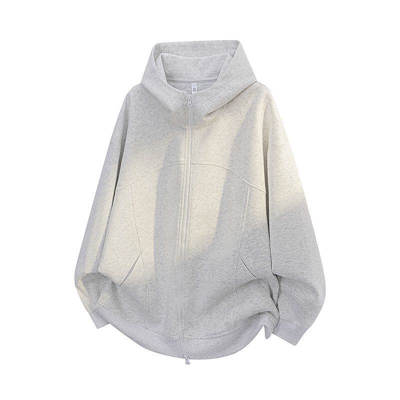 メンズ ヘビーウェイト フード付きカーディガン フルジップ 大きなフロントポケット ルーズフィット ヴィンテージ ストリートウェア ジャケット 秋アウター カジュアル 高品質ステッチ ブラック/他カラー