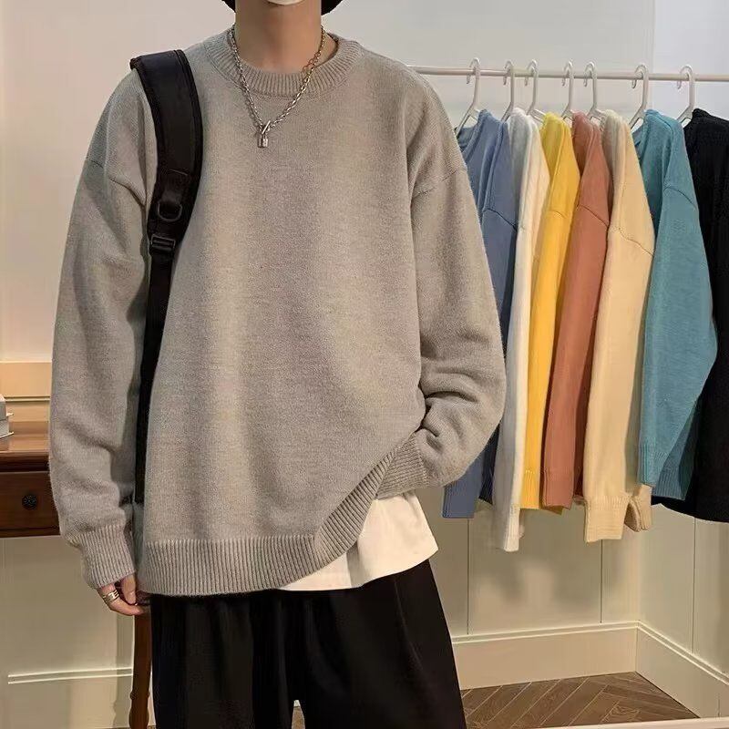 メンズ ヴィンテージ風 ラグジュアリー オーバーサイズ セーター ソフトティールブルー ニット 丸首 長袖 秋冬用 保温 カジュアル&セミフォーマル レイヤリング必須アイテム