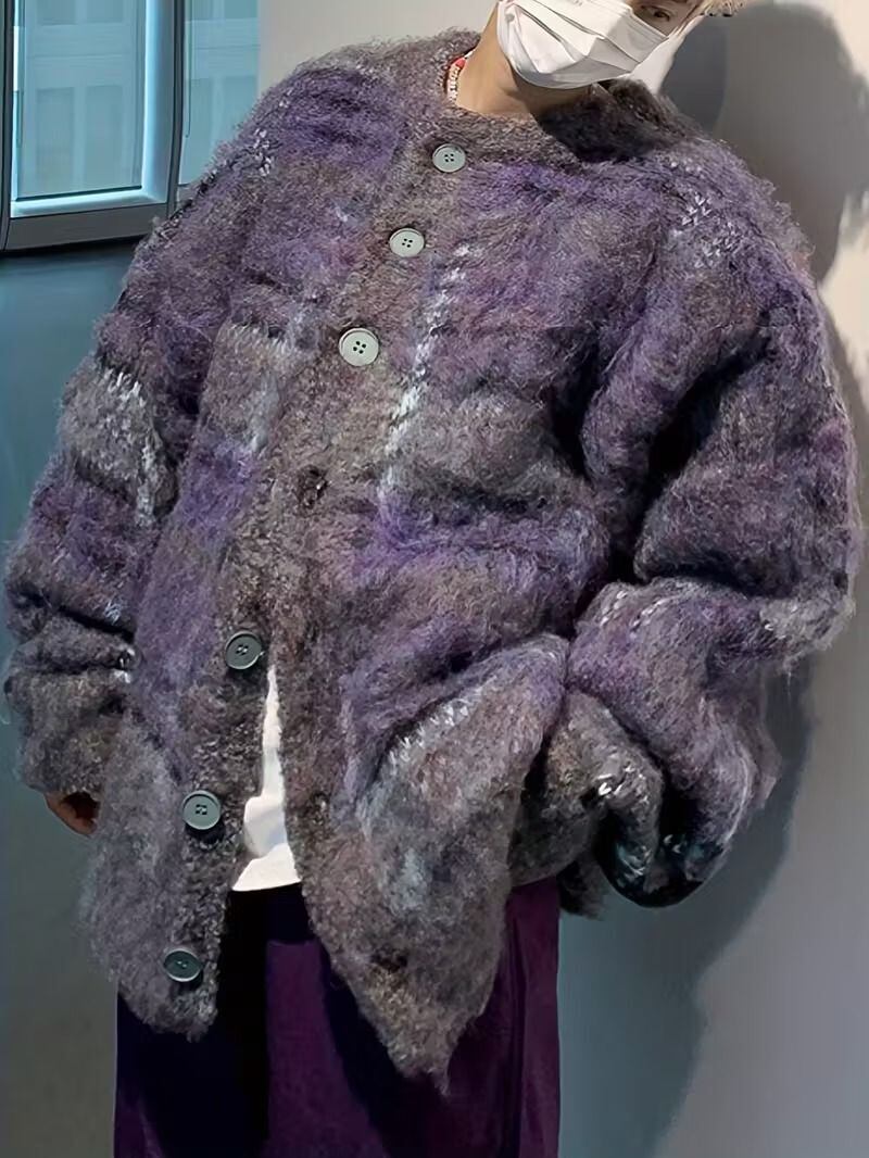 メンズ カーディガン ニット セーター オーバーサイズ 秋冬用 厚手 暖かい 無地 ルーズフィット ラウンドネック 韓国ファッション 大きいサイズ カジュアル