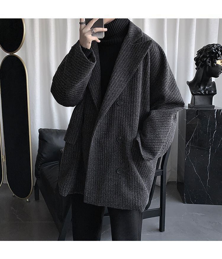 メンズ フリースコート ミドル丈 トレンチジャケット スーツカラー 両面デザイン 春秋用 ゆったりアウター 無地 グレー/ブラック/ブラウン 洗濯機対応 ビジネス&カジュアル兼用
