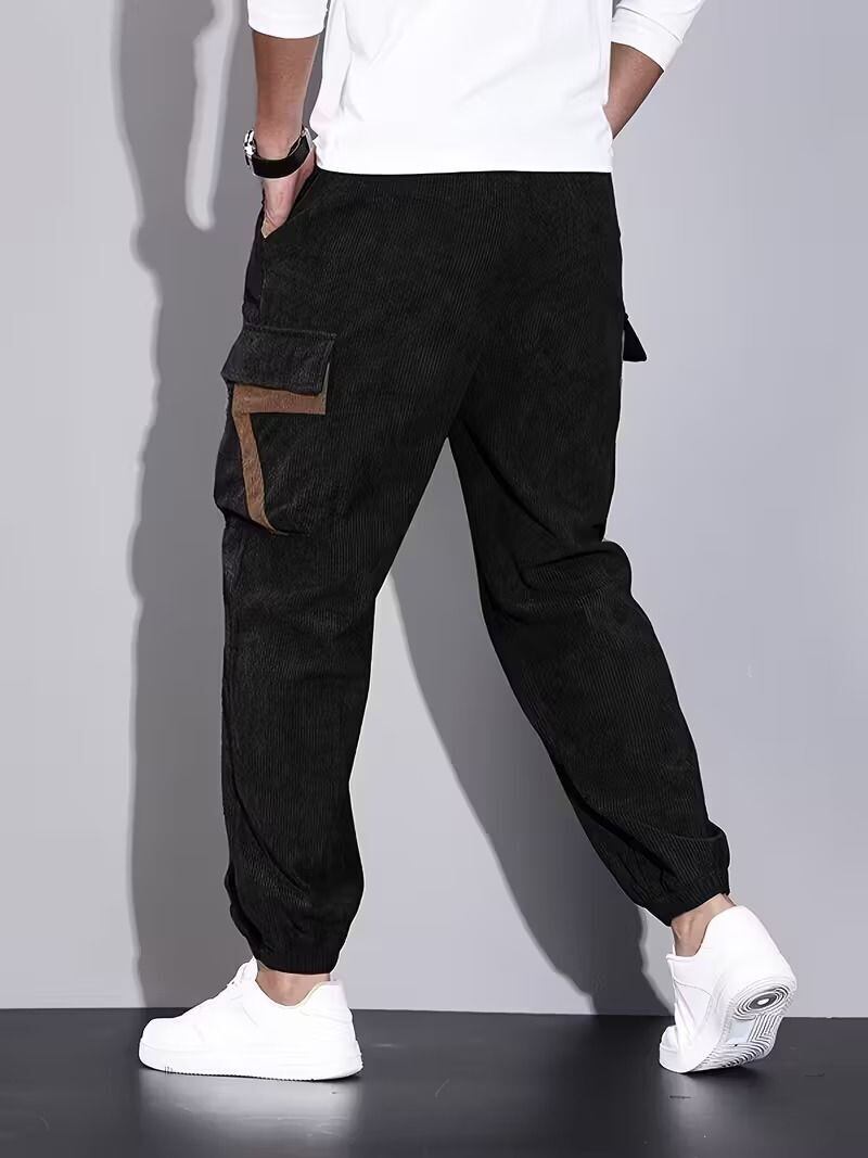 メンズ コーデュロイ カーゴパンツ 多機能ポケット付き ドローストリングウエスト カジュアル ジム アウトドア対応