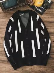 メンズ カーディガン Vネック 幾何学模様 長袖 秋冬 コレクション ポリエステル混紡 レギュラーフィット カレッジスタイル ボタン アウター