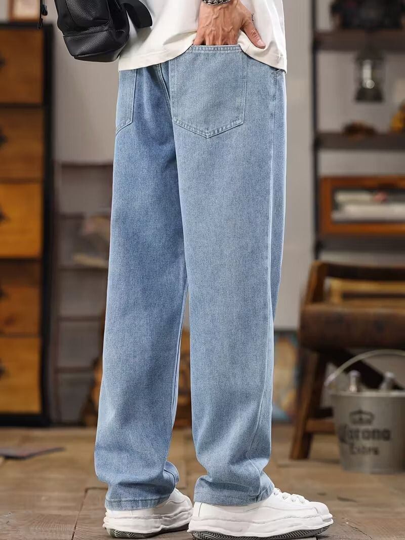 トレンド感あふれる韓国風デザインのメンズライトブルージーンズ。ウォッシュ加工で自然な風合いを表現し、カジュアルながら上品な印象に。ドローストリング付きで快適なフィット感を実現し、ストレートレッグで脚長効果も◎。耐久性と通気性に優れた生地で、春・秋を中心にオールシーズン活躍。街歩きからリラックススタイルまで幅広く使える万能デニムです。