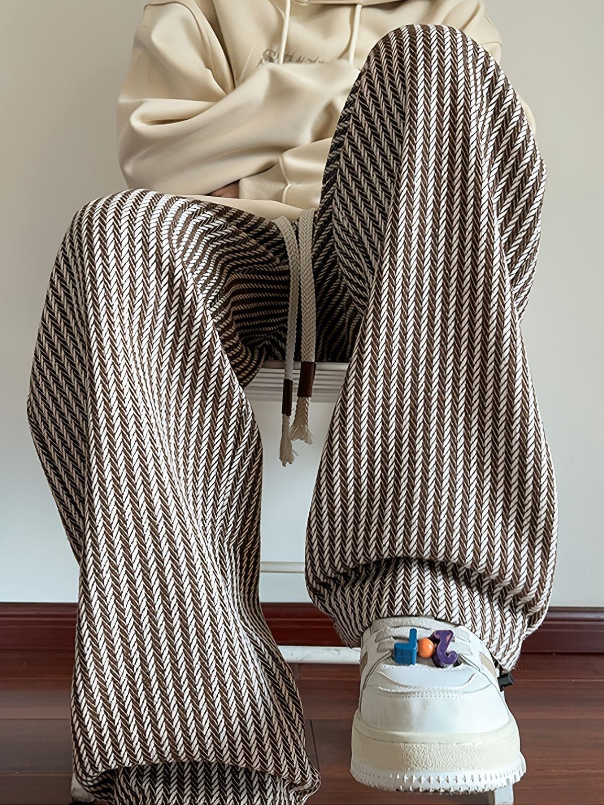 ストリートスタイルに欠かせないメンズヘビーウェイトパンツ。厚手のノンストレッチ生地で型崩れしにくく、秋冬の寒さにも安心。伸縮性のあるドローストリングウエストで快適なフィット感を実現し、ゆったりとしたストレートレッグでトレンドのリラックスシルエットに。フォーマルにもカジュアルにも合わせやすく、高品質なステッチが上品さを演出する万能トラウザーです。
