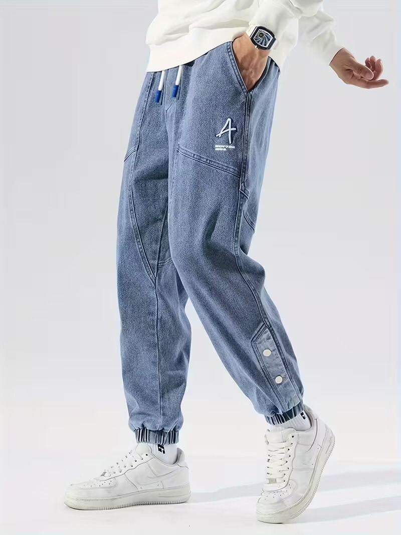 メンズ ヴィンテージ クロップド デニム ジョガーパンツ ルーズフィット 春秋 カジュアル ハーレムパンツ