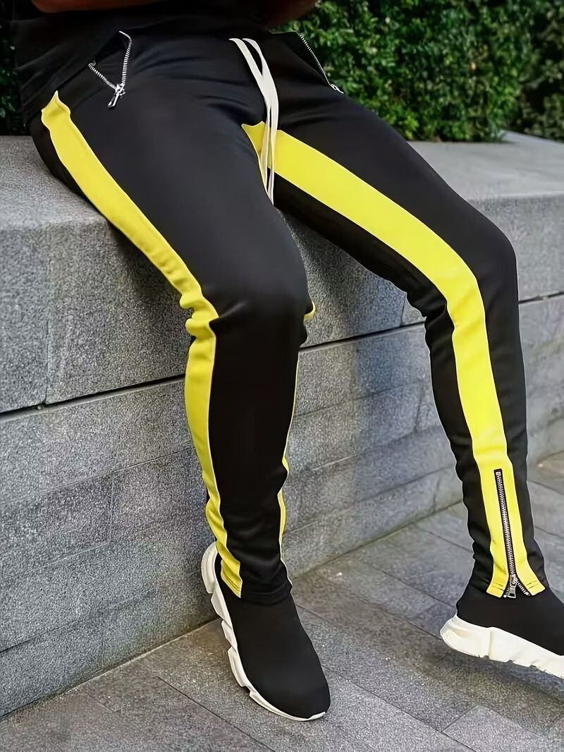 アクティブなライフスタイルをサポートするメンズアスレチックパンツ。スマートなスリムフィットで仕立てられたこのフルレングスパンツは、伸縮性に優れた素材を使用しており、快適な動きを実現します。ジップアップデザインとテーパードシルエットが、スポーツ時はもちろん、カジュアルな日常使いにもぴったり。ブラックとブルーの2色展開で、オールシーズン活躍するアイテムです。韓国ファッションのトレンドを意識したデザインで、ストリートスタイルにも適した一着です。