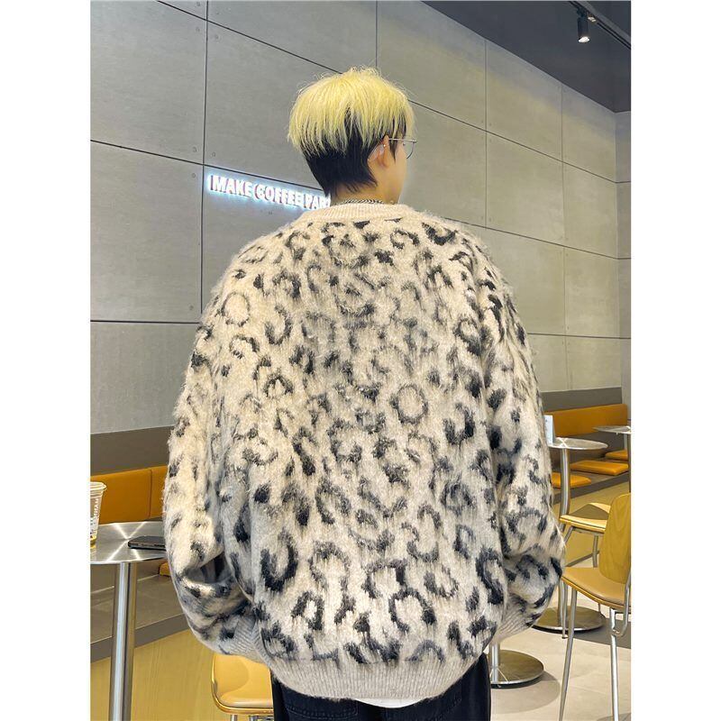 冬のスタイルに華を添える、メンズレオパードプリントフェイクプラッシュセーターが入荷しました!暖かいフェイクプラッシュ素材を使用し、ストリートスタイルにぴったりなオーバーサイズのデザインです。ブラック&ホワイトのコントラストが際立つレオパード柄は、存在感を放ちつつ、シンプルなボトムスとも相性抜群。また、クルーネックのプルオーバー仕様で、着脱も快適です。寒い季節にぴったりな一着として、日常使いやカジュアルなイベントに最適です。是非この機会に自分のスタイルに加えてみてください!