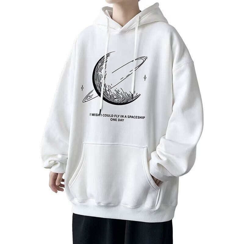 PRIVATHINKER メンズ 月と鳥 グラフィックスウェットシャツ - フード付き 340GSM 厚手ポリエステル ゆったりストリートプルオーバー 春秋カジュアルウェア
