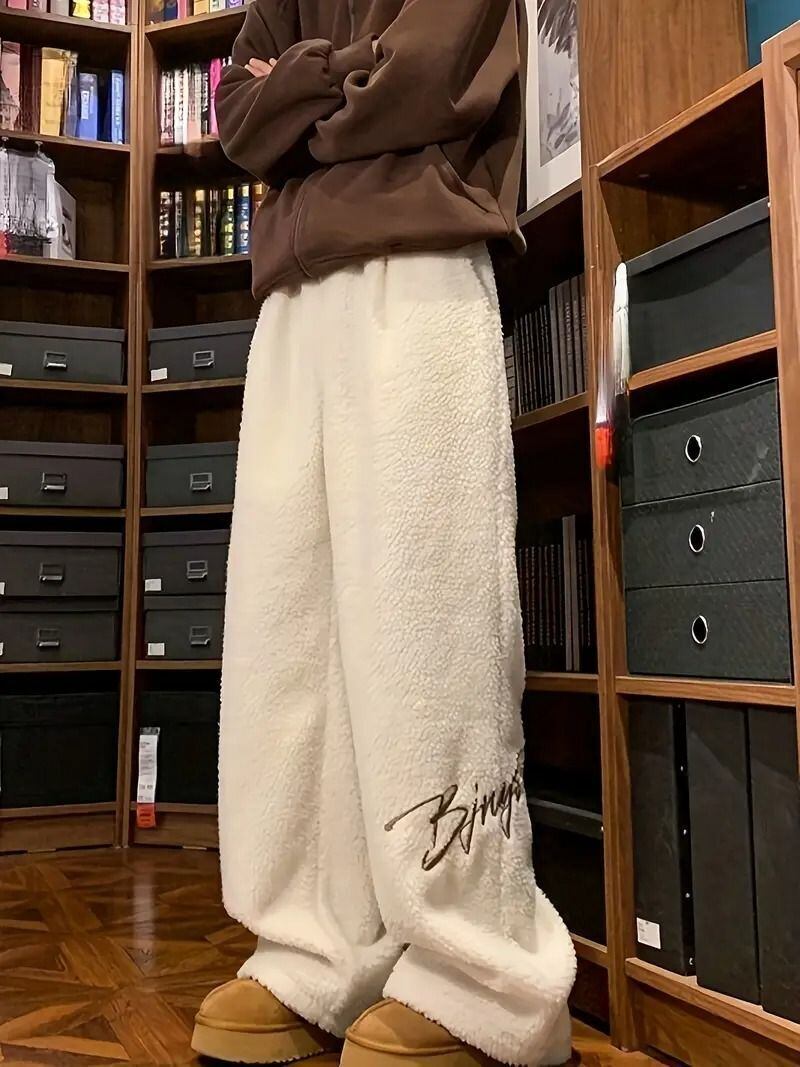 メンズ パンツ 秋 冬 暖かい ヘビーウェイト ラムファー ストレート カジュアル ポケット付き 韓国ファッション 学生 耐久性 ふわふわ テクスチャー ふわふわ おしゃれ