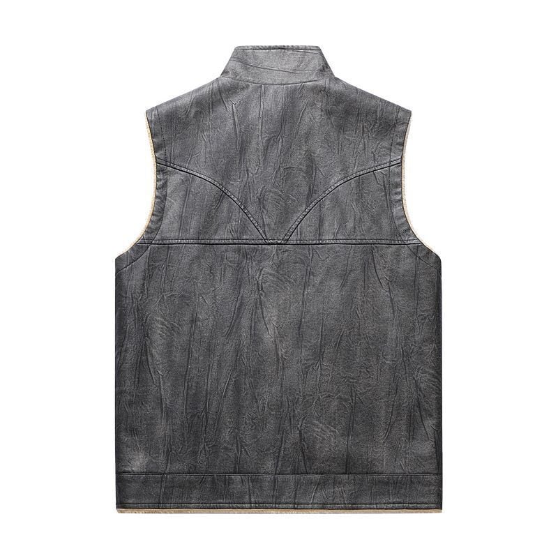 メンズ ベスト 羊皮風カラー付き 袖なし Vネック ジップアップ 冬コート ブラック ポリエステルフィラー ポケット付き カジュアルスタイル 秋冬用 アウターウェア
