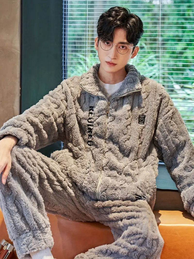 メンズ フリース パジャマ 冬用 セットアップ コーラルベルベット あったか もこもこ 部屋着 ルームウェア 長袖 上下セット 保温 快適 着心地抜群 暖かい ナイトウェア シンプル おしゃれ 寝間着 ギフト
