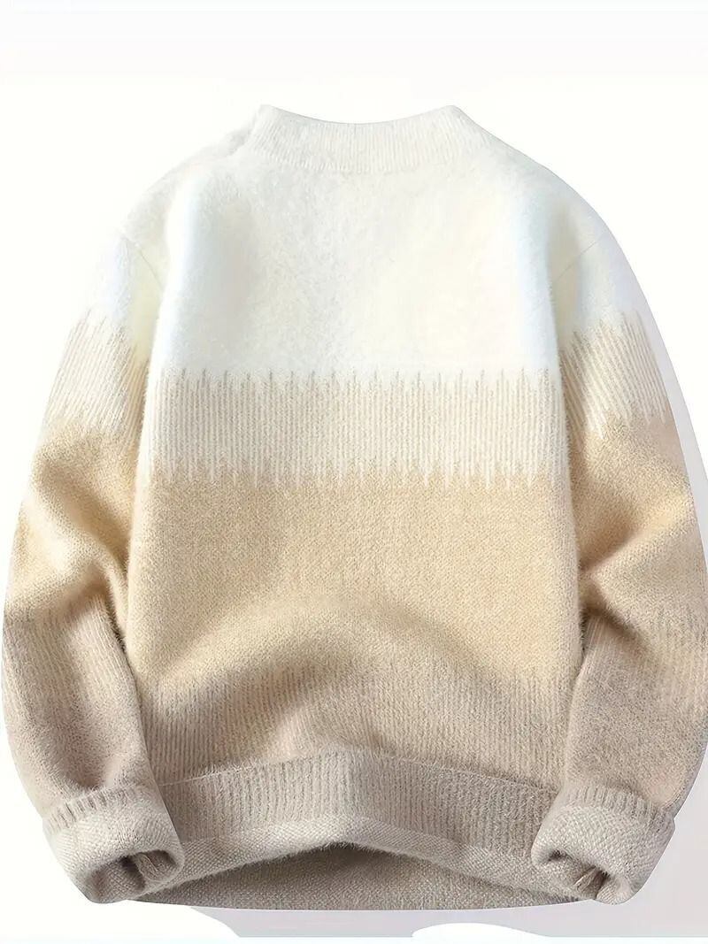 メンズ ストライプ ニットセーター 厚手 クルーネック 暖かい 幾何学模様 伸縮性 秋冬 カジュアル トレンド プルオーバー