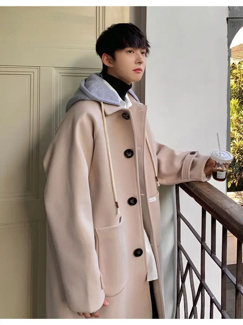 メンズ チェスターコート フード付き ヘビーデューティ ラシャ風 ブリティッシュ風 ボタンフロント ルーズフィット オーバーサイズ アウター 防風 防寒 秋冬 春 カジュアル フォーマル おしゃれ コート