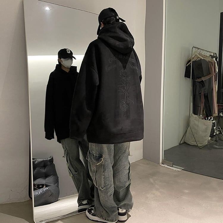メンズ スウェットシャツ パーカー フーディー フード付き 秋冬 ルーズフィット カジュアル ストリート ファッション おしゃれ トレーナー 長袖 シンプル 無地 コーデ 通勤 通学 ピンク ブラック