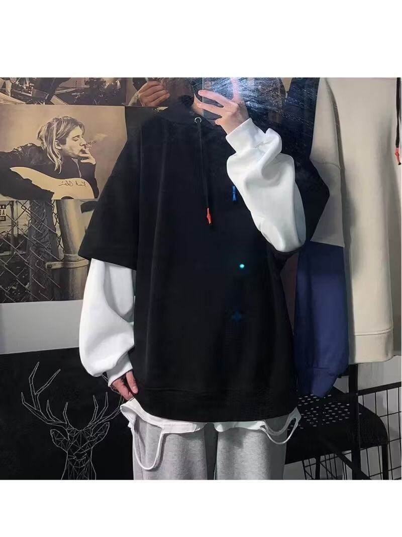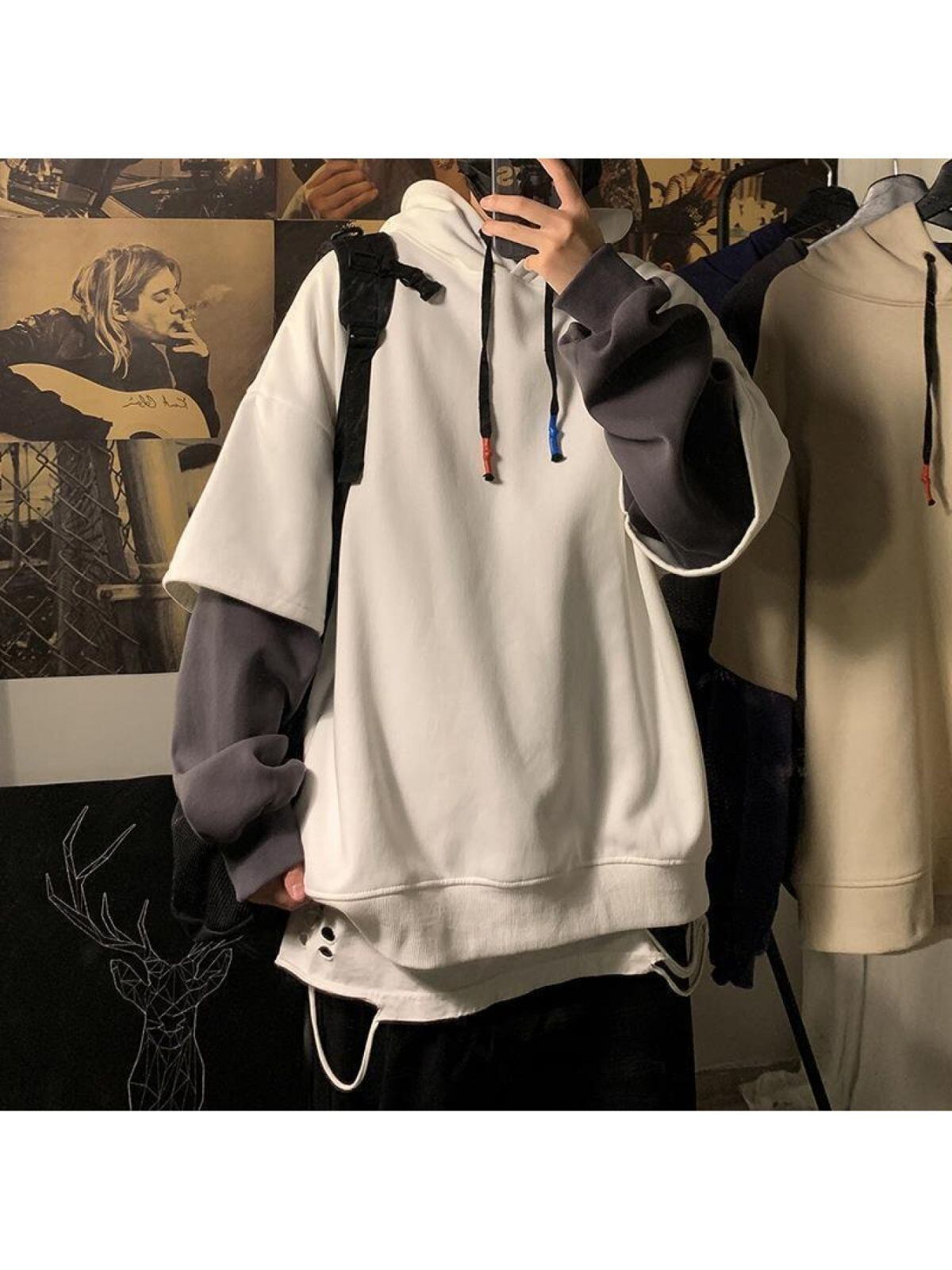 メンズ パーカー フーディー ヘビーデューティ オーバーサイズ プルオーバー カラーブロック ルーズフィット 長袖 カジュアル スポーツ 春秋 おしゃれ ベルト裾 プラスサイズ 洗濯機可 レイヤード 快適