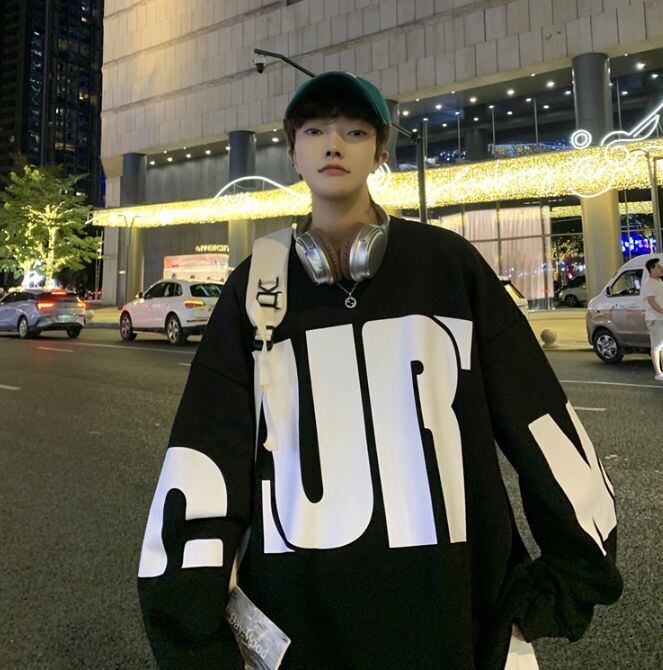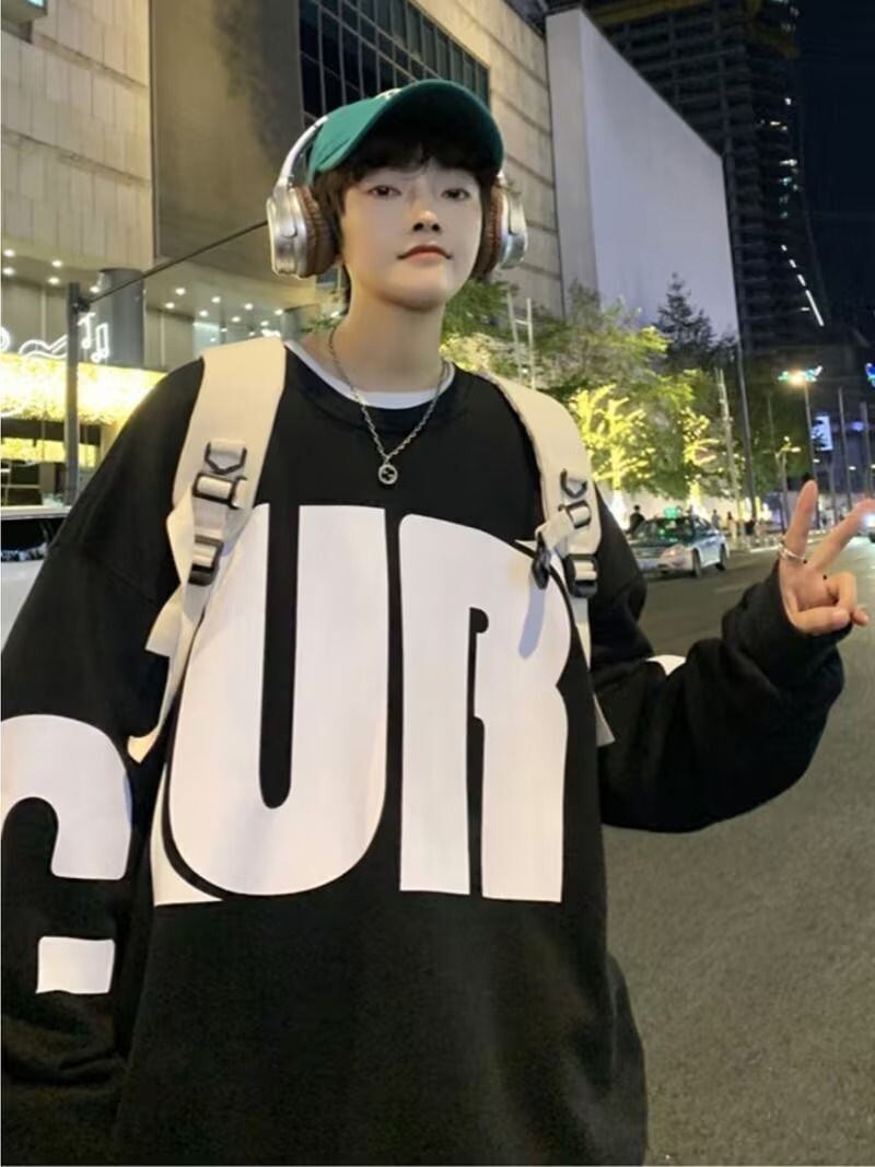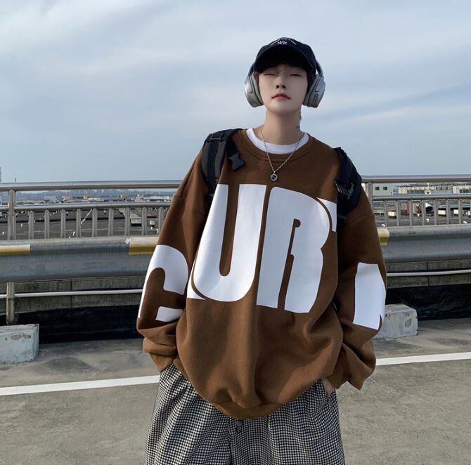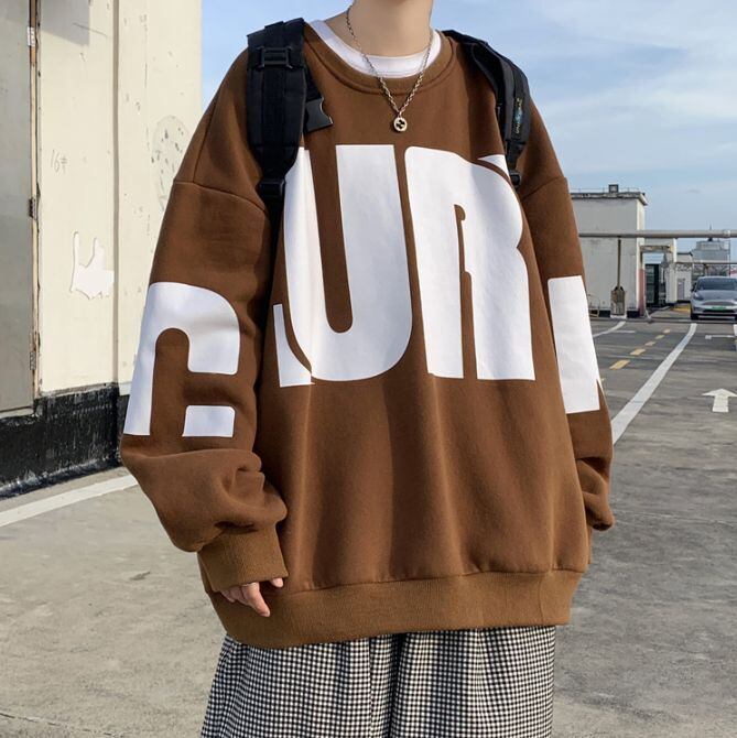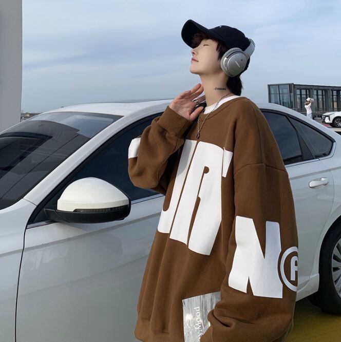 メンズ トレーナー オーバーサイズ プルオーバー カジュアル ストリート ヒップホップ ラウンドネック ブルー ブラウン ブラック ルーズフィット 韓国系 トレンド コーデ リラックス ニッチデザイン カップルコーデ