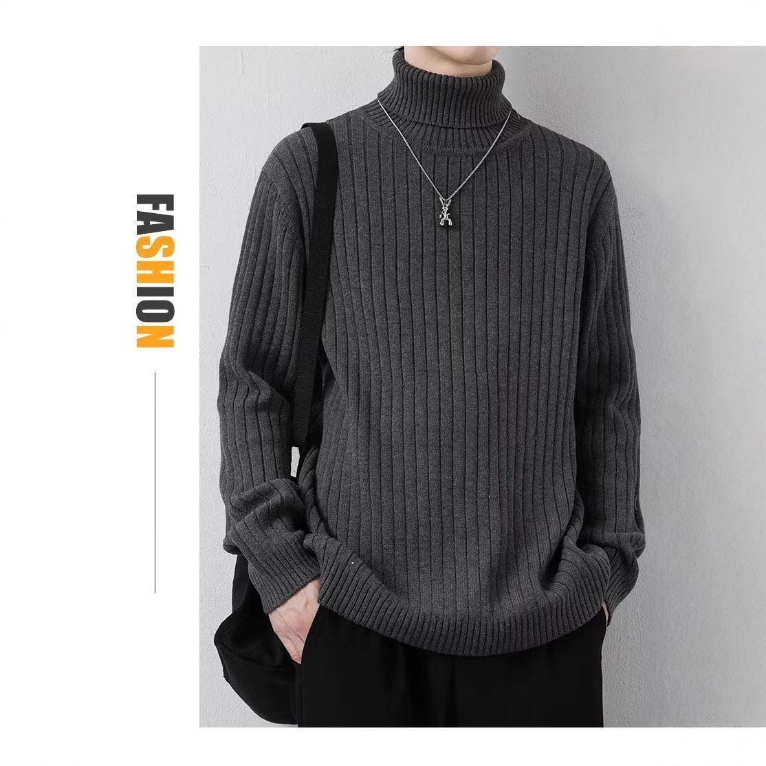 【メンズ】ハイカラー セーター 秋冬用 厚手 韓国風 トレンド ニット 暖かい 無地 ミディアムストレッチ スキニーフィット スタンドカラーデザイン 防寒インナー トップス