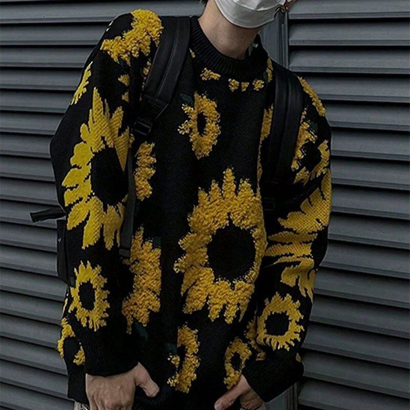 秋冬にぴったりな「秋冬 メンズ ヴィンテージ ひまわり フロックジャカード 柄 ルーズ ストライプ クルーネック セーター デザインニット トレンド トップス」をご覧ください。このセーターは、ひまわり柄がキュートに映え、フロックジャカードの素材感がヴィンテージ風の雰囲気を演出します。ルーズなシルエットは体型を気にせず快適に着用でき、ストリートスタイルやカジュアルシーンにぴったりの一枚です。個性的なデザインで、周りと差をつけることができます。この機会にぜひ手に入れて、温かみのあるスタイルを楽しんでみてはいかがでしょうか!