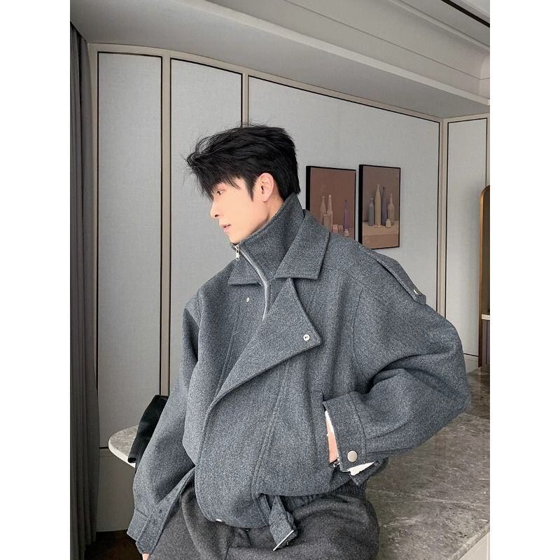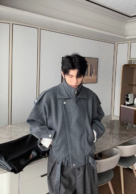 クリーンフィット ユニセックス ツイード ショートジャケット フェイクツーピース デザイン ジップアップ 秋冬用 レギュラーフィット カジュアル&セミフォーマル対応 ショートブレザー