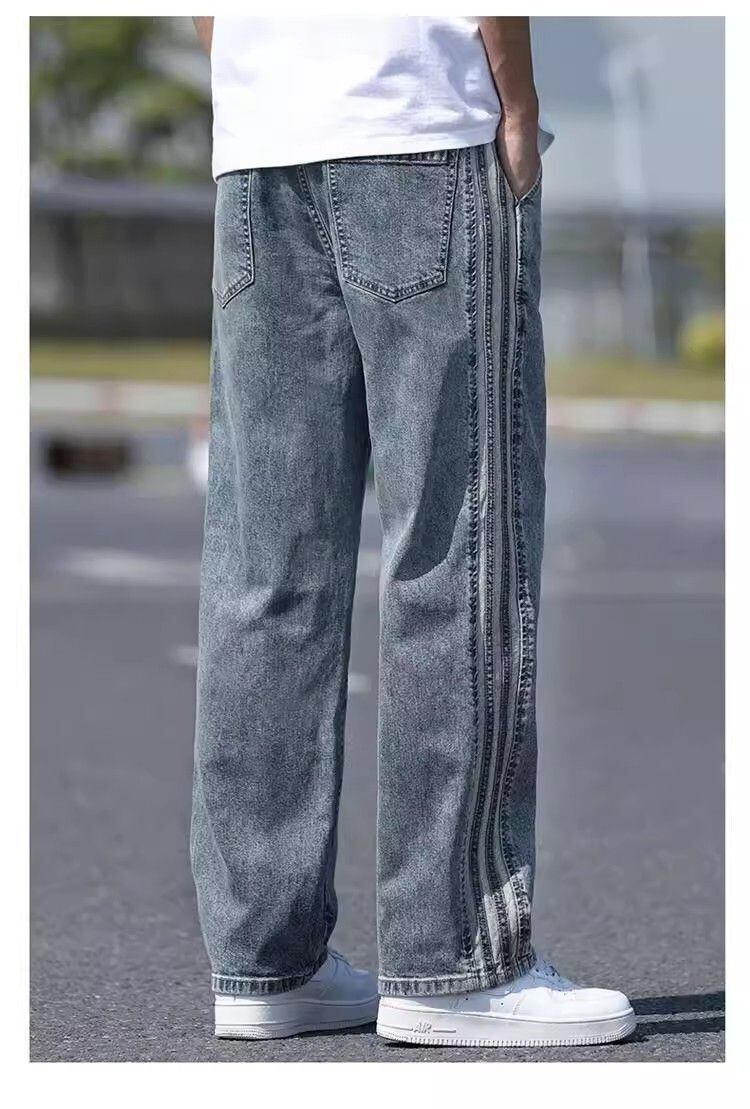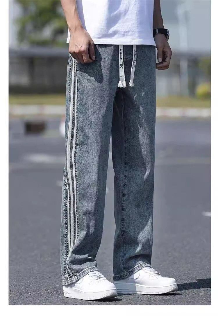 フェイクデニムパンツ トレンド マルチカラー ルーズ ストレート レギュラーフィット ノンストレッチ カジュアル ファッション ボトムス