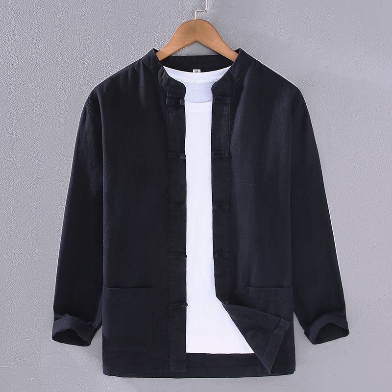 メンズ タングスーツ シャツ 中国風 フォーマル ボタンアップ スタンドカラー 長袖 ノンストレッチ 洗濯機対応 ウェディング&ビジネスカジュアル対応 伝統モダン シャツ