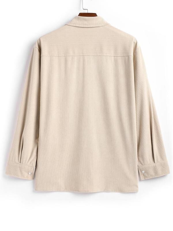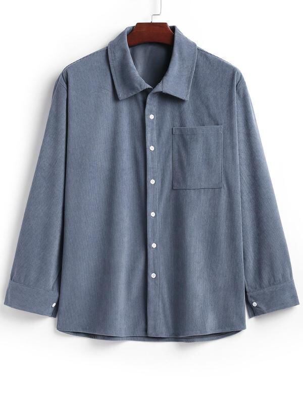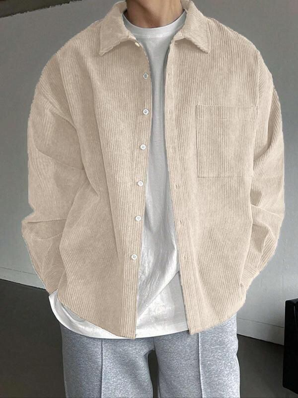 メンズ 無地 ボタンフロント コーデュロイ シャツ レギュラーフィット カジュアル 長袖 秋冬対応 ベーシック トップス デイリーウェア