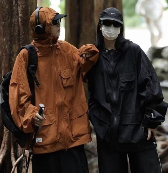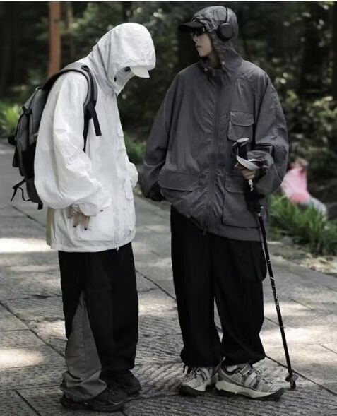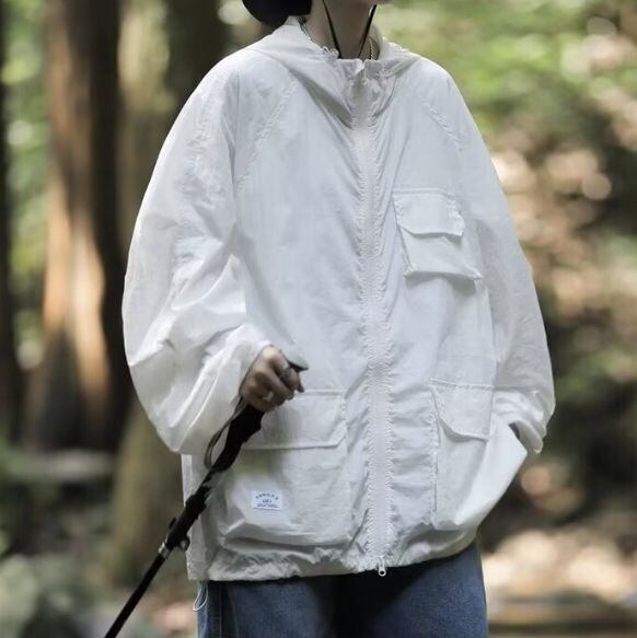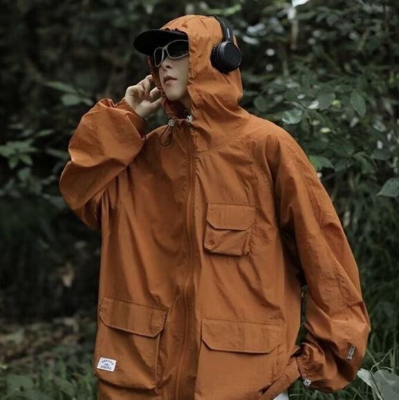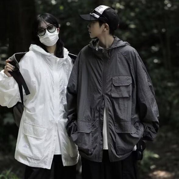 春秋 新作 メンズ 韓国風 無地 フード付き ジャケット マルチポケット 長袖 トレンディ ウィンドブレーカー カップル対応 カジュアル アウター