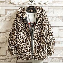 メンズ コート 秋冬 フード付き レオパード ヒョウ柄 ヴィンテージ 原宿 HIPHOP ストリート オーバーサイズ ゆったり 厚手 ボア フリース ジップアップ カジュアル 防寒 アウター 長袖