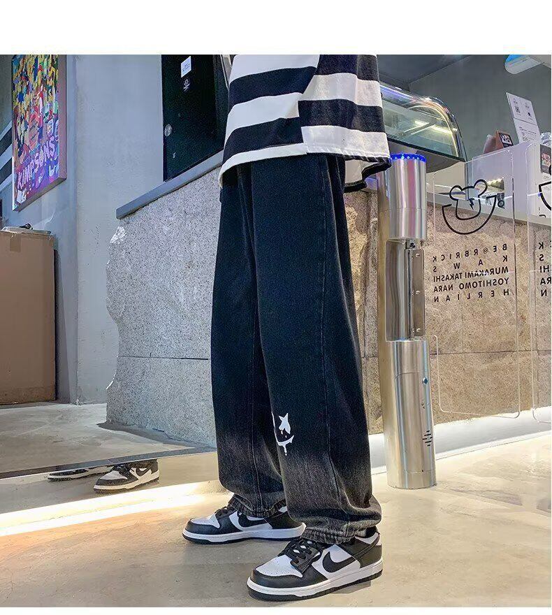 【メンズ】レトロ 笑顔プリント ストレートレッグ ジーンズ ゆったりフィット カジュアル デニムパンツ ジョイフル ポケットデザイン 春秋用 ストリートウェア