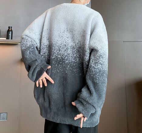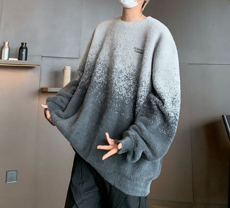メンズ セーター ニット プルオーバー ピンク グラデーション レイジースタイル ルーズフィット オーバーサイズ ミンクファー 風 デザイン クルーネック 長袖 トップス カジュアル 個性派 韓国ファッション ストリート 冬 春