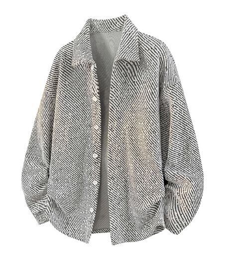 【メンズ】ヴィンテージ風 アメリカンカット コールジャケットシャツ 春秋用 オーバーサイズ ハウンドトゥース柄 ボタンディテール シングルブレスト 長袖 シャツアウター