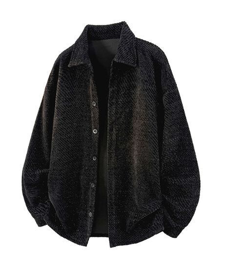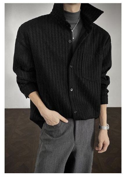 "【メンズ】ヴィンテージ風 アメリカンカット コールジャケットシャツ 春秋用 オーバーサイズ ハウンドトゥース柄 ボタンディテール シングルブレスト 長袖 シャツアウター "